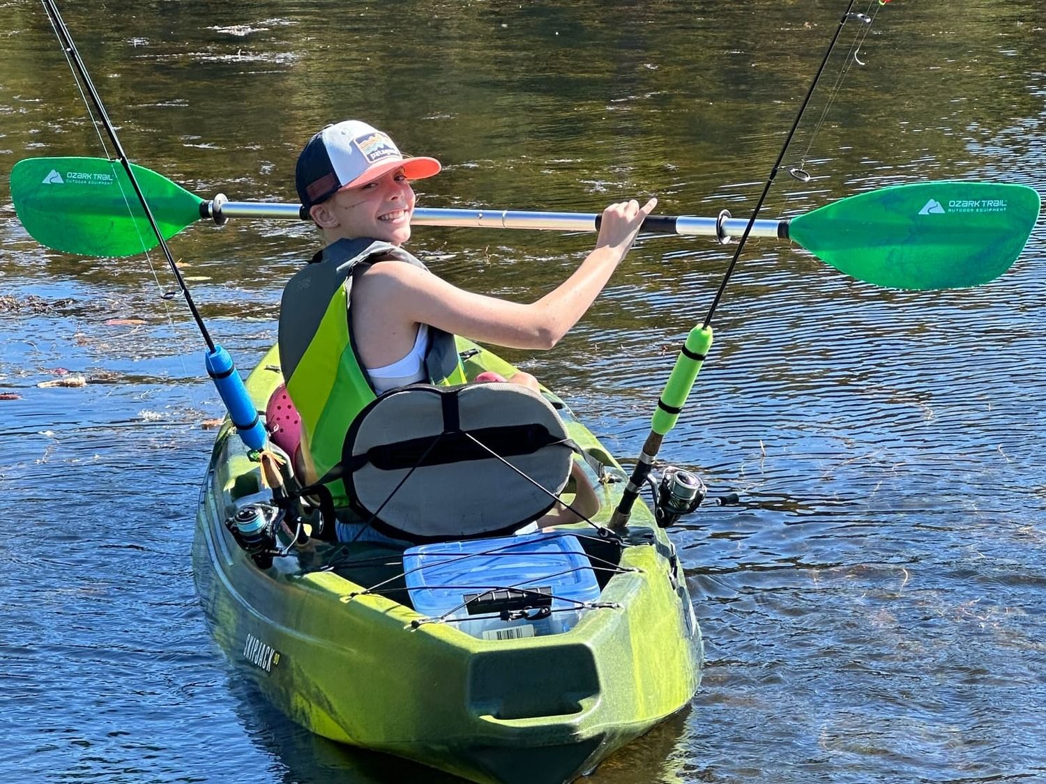 I started learning how to fish by fishing off the docks. At first, I didn’t catch much, but I kept trying and got better each time. After a while, I wanted to go farther out where the bigger fish are, so I researched and bought a youth kayak.